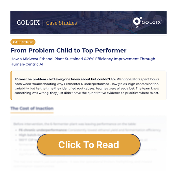 Fermenter 6 consistently underperformed the others with elevated contamination and batch-to-batch instability. The plant knew performance was uneven, but the root cause of the chronic underperformance was not understood. AI-driven baselining and sensitivity testing informed and validated specific operating parameter adjustments that reduced variability, controlled contamination, and strengthened fermentation consistency across the system.